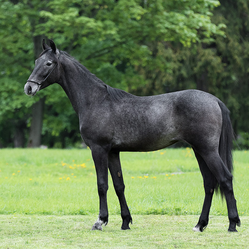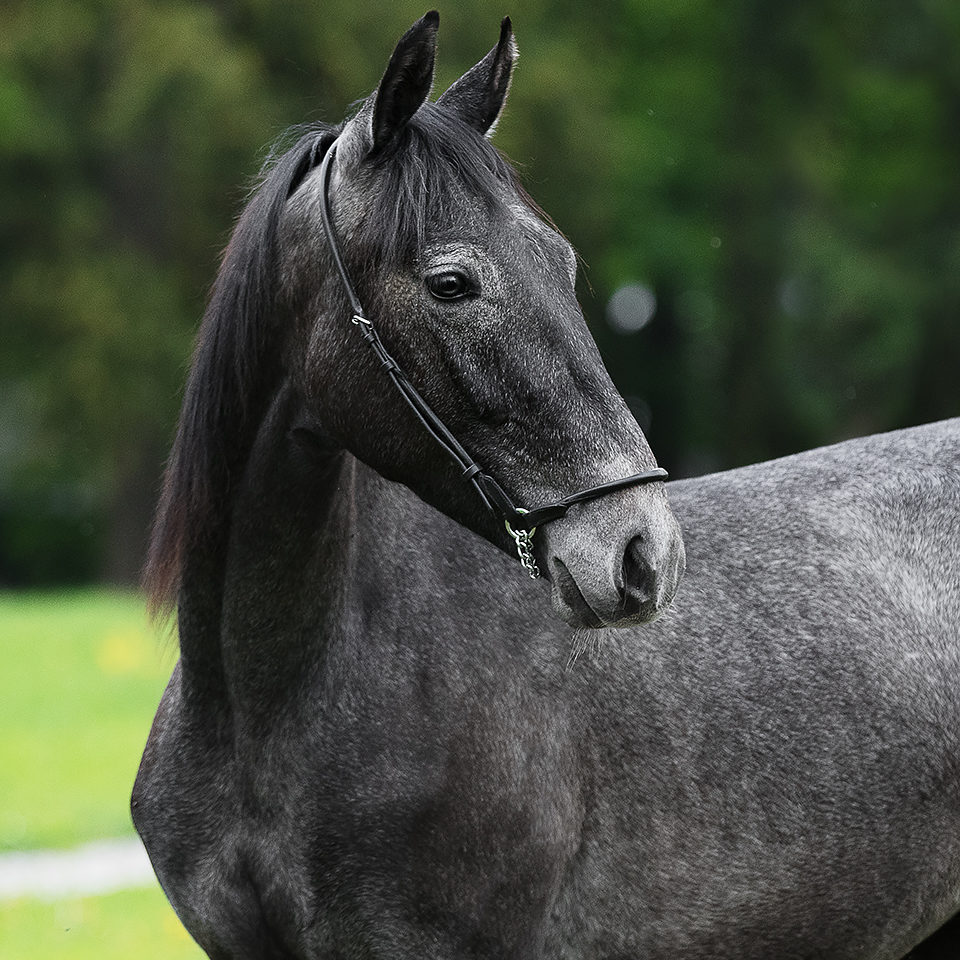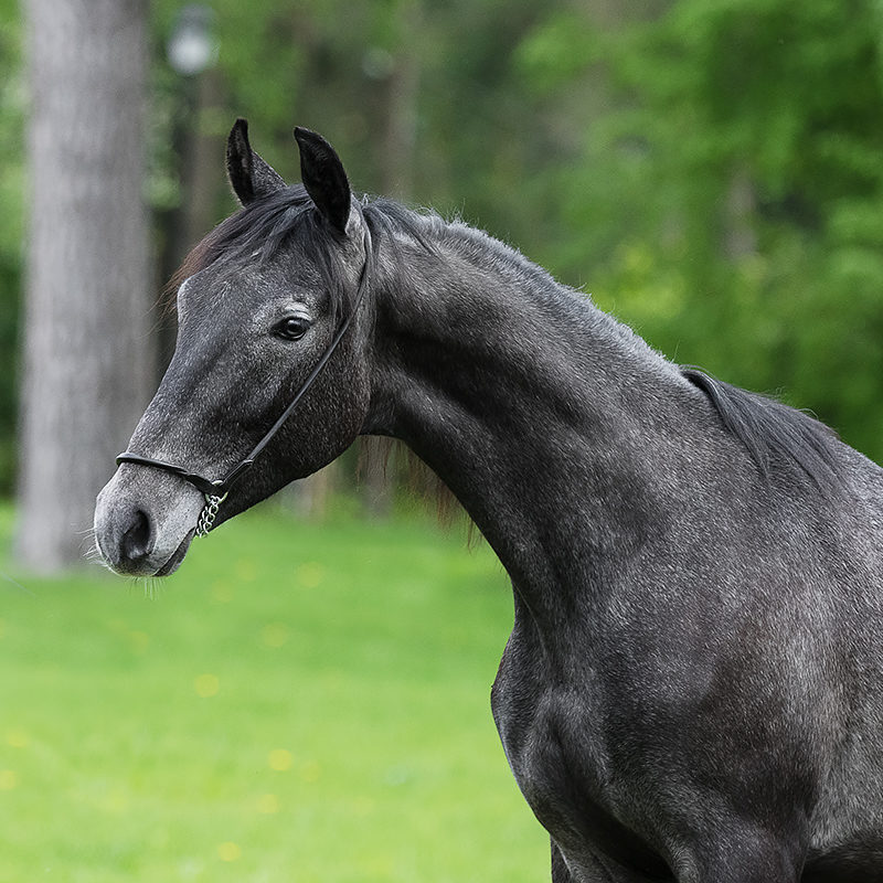 This is an elegant, breedy colt with an excellent top-line, clean limbs and a long neck. His gracious head and very expressive, kind eyes speak of his good character and orientation towards people. Bastion has elegant, light movement and a back that is not long, making him suitable also as a saddle type.