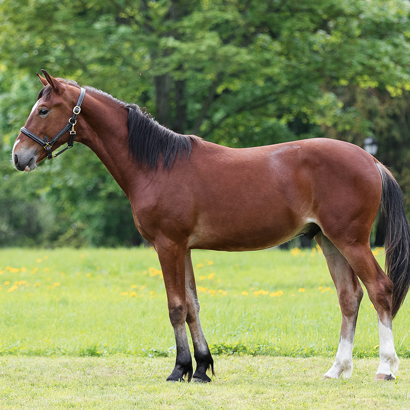 Gektor is rather sturdy and square-built in body, yet leggy with excellent movement, and well suited to work under saddle as well as in harness. He has a long neck, good spine, and is well-conformed behind, with clean, flexible hind legs. His head is light and correct, with the expressive eyes typical of both parents. Gektor’s character is both excellent and kind.