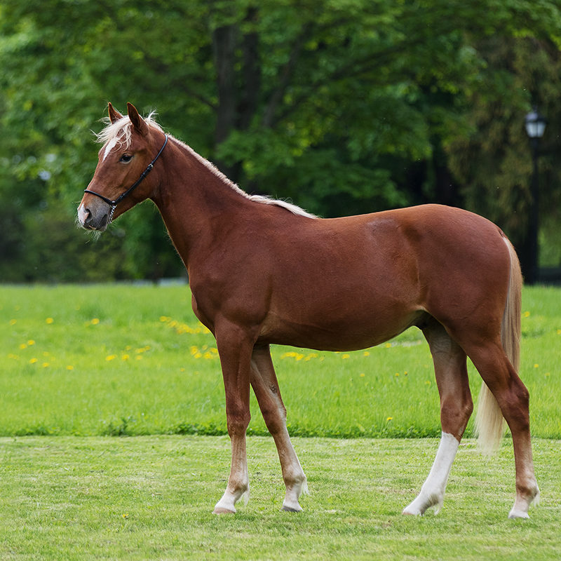 Knyazhik’s dam Kosma of the Kadetka mare family, Kuban’ “nest”, is a daughter of Perm’s Smak.  Her family has given us the stallion Kurazh (2,1.2 at age 4!) and chestnut Kolenkor (three-year-old All-Russian record-holder at 2400 meters and phase winner of the Great Siberian round).